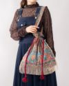 ツイストコードやゴールドのフリンジを使用した巾着バックです。