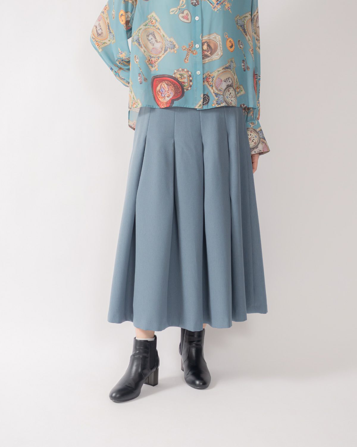 ボックスタックには沢山分量を入れており、裾のボリュームがきれいなシルエットに仕上がった高級感のある1枚です。