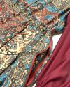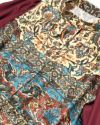 深い色味の赤が目を引くオリジナルプリント柄です。