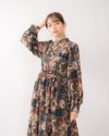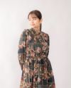 ウエストにゴムの入ったスタンドカラーのワンピースです。