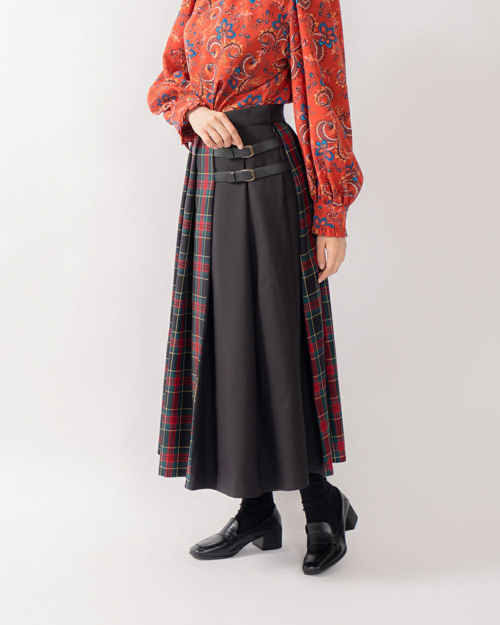 ベルトチェックスカート